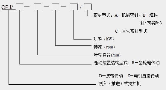 CPJ型側(cè)入式皮帶攪拌機由電機、皮帶盤、機架、機械密封、堵漏裝置、攪拌軸、攪拌器等組成。根據(jù)密封方式可分為:A型:機械密封,B型:填料密封,C型:其它密封方式,可適用于不同密封要求的場合。安裝方式為臥式安裝,也可根據(jù)現(xiàn)場工藝條件調(diào)整安裝方式。
