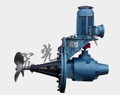 驅動裝置采用普通電機或防爆電機直接或間接通過圓柱齒輪、擺線針輪減速機的驅動裝置主軸,通過聯(lián)軸器與攪拌軸聯(lián)接。攪拌軸由雙向推力軸承和水潤滑滑動軸承支承,具有足夠的強度和剛度,并具有好的穩(wěn)定性。