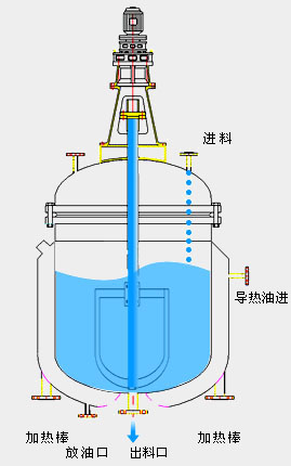 攪拌罐蓋上部配置有傳動裝置(電機(jī)或減速器),由傳動軸驅(qū)動攪拌罐內(nèi)的攪拌器。