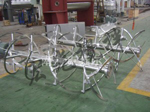 GLD攪拌器應用于高粘度(超過100,000cp)的流體攪拌中,有好的傳熱和表面效果。其結(jié)構(gòu)形式有單螺帶和雙螺帶二種。不同數(shù)量的翼片,不同螺距以及不同形式的螺帶可以根據(jù)不同的攪拌要求而特殊制作。