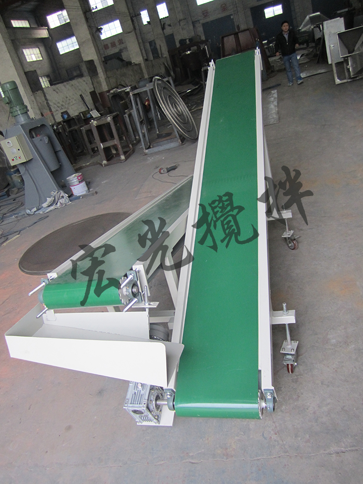 皮帶輸送機(jī)又稱膠帶輸送機(jī),輸送帶根據(jù)摩擦傳動(dòng)原理而運(yùn)動(dòng),適用于輸送堆積密度小于1.67/噸/立方米,易于掏取的粉狀、粒狀、小塊狀的低磨琢性物料及袋裝物料,如煤、碎石、砂、水泥、化肥、糧食等。膠帶輸送機(jī)可在環(huán)境溫度-20℃至+40℃范圍內(nèi)使用,被送物料溫度小于60℃。其機(jī)長及裝配形式可根據(jù)用戶要求確定,傳動(dòng)可用電滾筒,也可用帶驅(qū)動(dòng)架的驅(qū)動(dòng)裝置。
